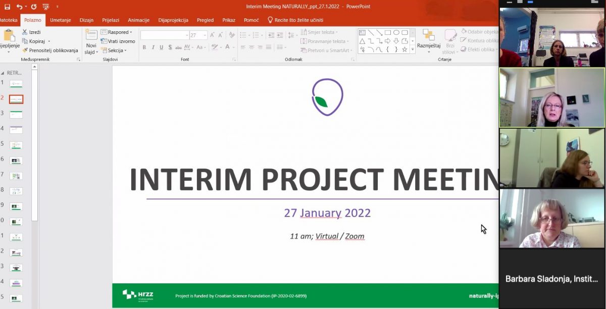In the beginning, project leader, Danijela Poljuha from the Institute of Agriculture and Tourism briefly presented the activities carried out (employment of doctoral and postdoctoral students, procurement of equipment and consumables and performed analysis and training). TAfterwards, the foreseen activities in the project (planned analyzes, training, procurement plan for chemicals) were announced. The project’s first results, which were presented at two symposia during 2021, were also presented here. At the end of the meeting, the following goals of the project were highlighted, and the organization of work was agreed.