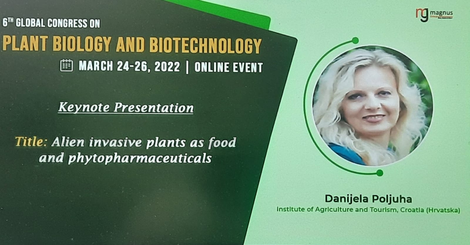 Project leader, Ph.D. Danijela Poljuha gave a plenary lecture on the topic of invasive alien species as a food source and phytopharmaceuticals.